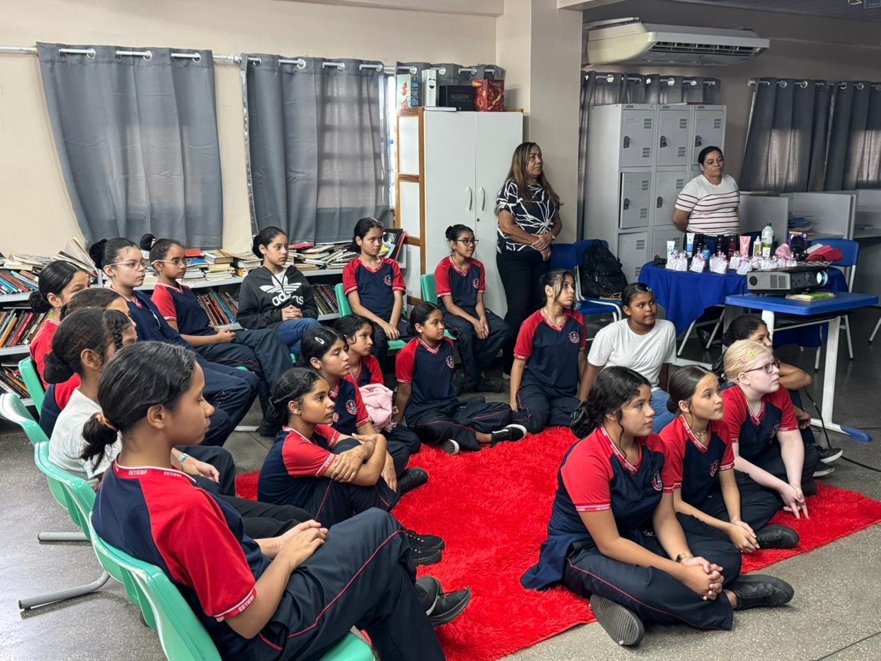 Dentre as atividades realizadas, as alunas, divididas em grupos, participaram de uma roda de conversa com suas professoras a respeito do autocuidado e da saúde feminina. A intenção foi criar um espaço confortável para que as estudantes pudessem falar sobre questões que elas, geralmente, não têm oportunidade.