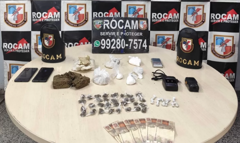 Uma mulher de 37 anos e um homem de 20, foram presos em flagrante por policiais militares do Rondas Ostensivas Cândido Mariano (Rocam)
