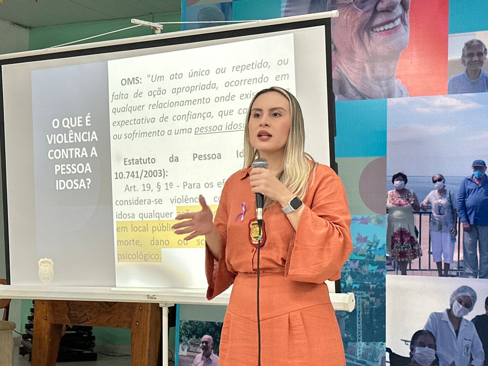 A palestra foi ministrada pela delegada-adjunta Larissa da Costa Barreto, que destacou a importância de detectar sinais de alerta de violência contra idosos e os procedimentos adequados de encaminhamento às autoridades competentes.